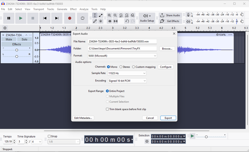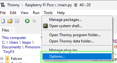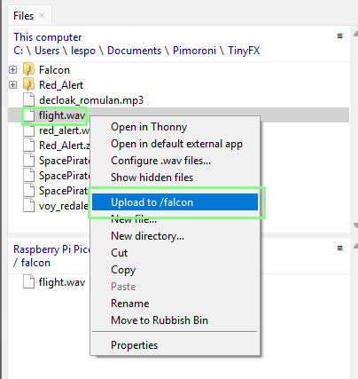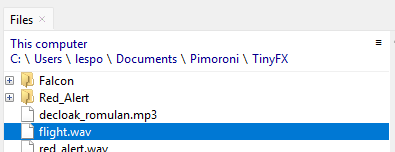 To get the audio file onto the Tiny FX W, we need to use Thonny.