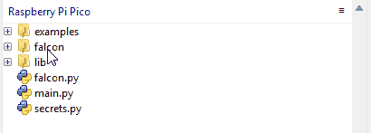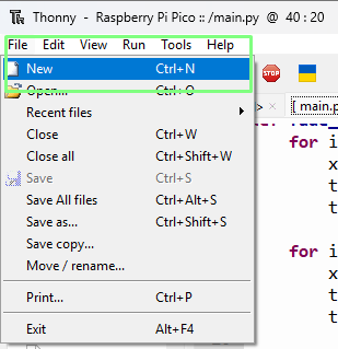 main.py. Thonny refers to the board as a Raspberry Pi Pico.