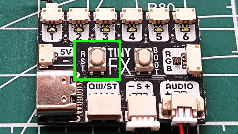 - Ensuring that all the connections are correct, press Tiny FX W’s reset button to start the code. MicroPython automatically runs any file called main.py.